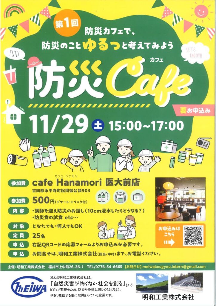 Cafe Hanamoriにて「防災カフェ」を初開催します!